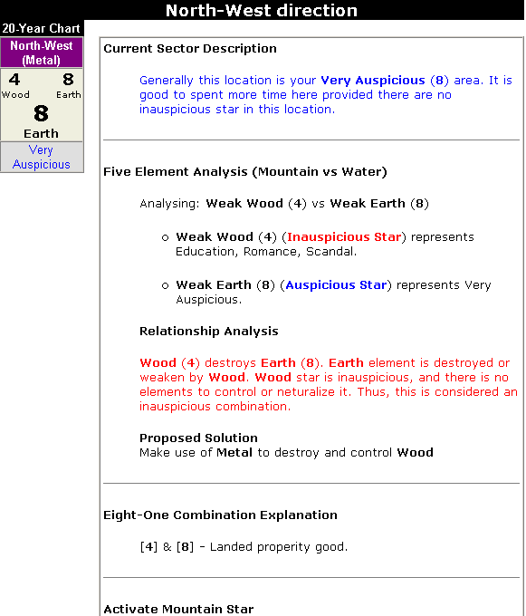 Analysis Details you will get from our Flying Star (Xuan Kong Fei Xing) Package.