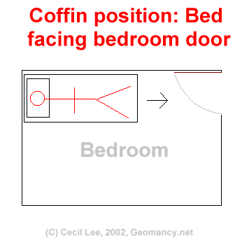 A `coffin' position is where one's leg face the bedroom door.